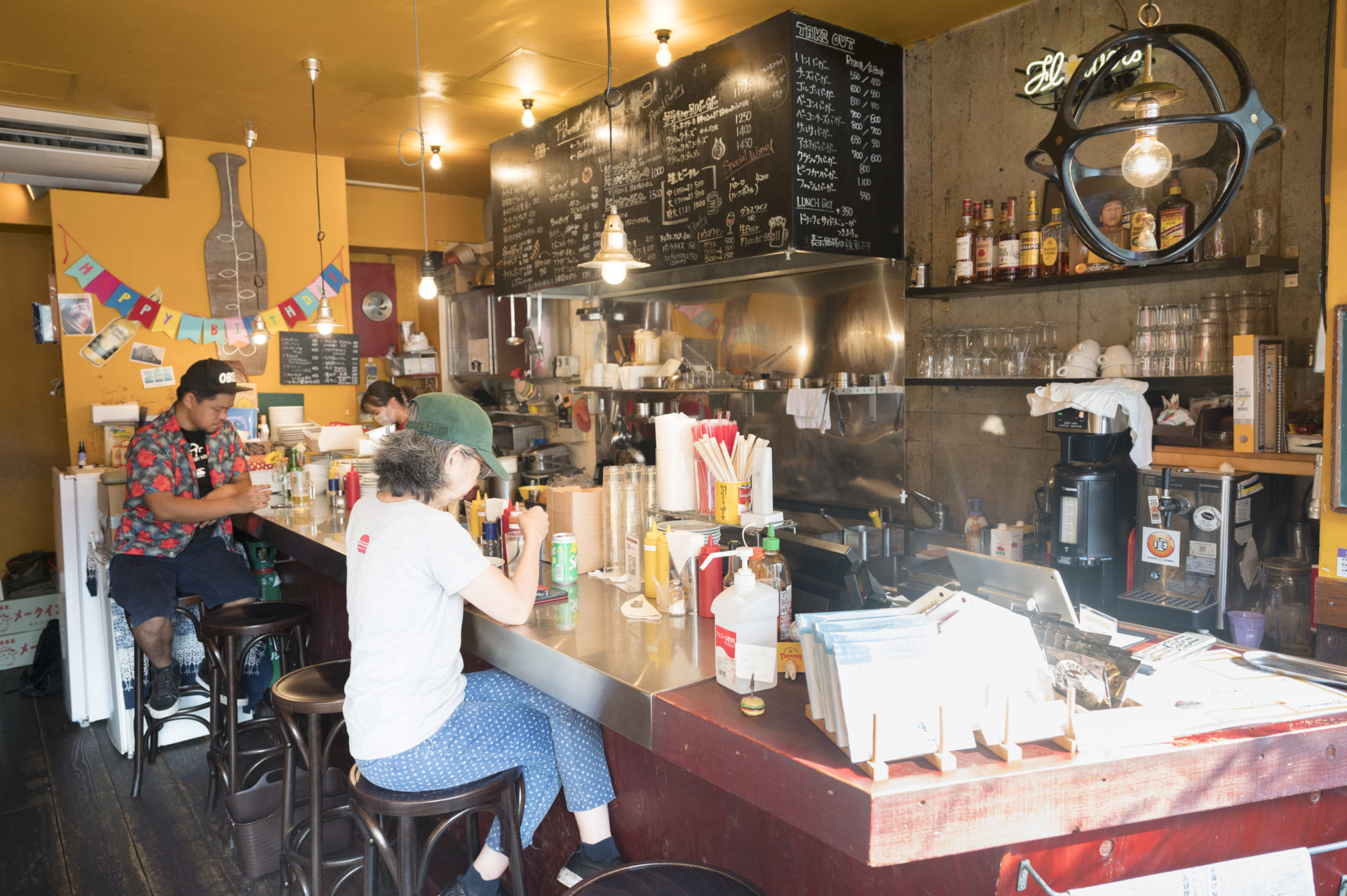 手作りのハンバーガーとスープやサラダで軽くランチをしたり、ビーフステーキとビールでガッツリディナーも楽しめるカジュアルなカフェレストラン。