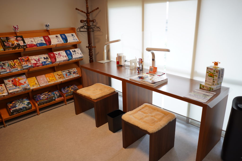店内には、ガンプラを組み立てできるビルドスペース(有料)があり、ニッパーやピンセットなどの道具は無料で貸し出ししています。その他、箱パッケージのラミネート(有料)、プラモデルを組み立て終わった後のランナーの回収などのサービスも行っている他、ガンプラの買取や中古販売もしています。スタンプカードのスタンプが10個たまると、店内ショーケースでお客様の作品を展示いただけるシステムがあり、力作が並んでいますので、見に来られるだけでもお楽しみいただけます。